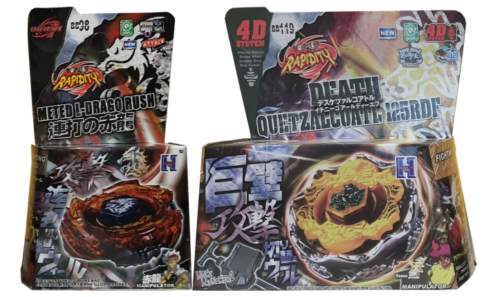 Pachet titirezi 4D Meted L-Drago Rush BB98 fara lansator + Death Quetzalcoatl 125RDF BB119 cu lansator si varf metalic